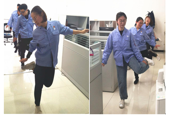 在五四青年節(jié)來臨之際,精密部件事業(yè)部一支部組織員工開展“快樂工作,健康生活”工間操活動。每天在工作之余進行15分鐘工間操鍛煉,工間操由最近火遍全網(wǎng)的毽子操以及上半身拉伸組成,毽子操主要圍繞膝、髖、踝關(guān)節(jié)周圍的肌肉、韌帶進行鍛煉,有利于提高軟組織的活動功能,改善下肢循環(huán);上半身運動以拉伸為主,支部為員工發(fā)放了拉力器,以便員工針對頸肩及腰背進行拉伸,通過簡單的一組動作可有效改善因伏案久坐引起的頸肩疼痛及圓肩駝背問題。