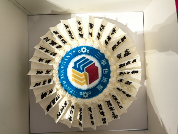 學(xué)習(xí)結(jié)束后,就進入了第二個班組活動——回顧往昔,慶祝“三原色”三歲生日。磨工班組的成員們齊聲喊出“磨工班組三歲啦!”,有人趕忙去拿蛋糕,有人忙著搬桌子,還有人拆蛋糕包裝。組員彭高和高強小心翼翼地拿著蛋糕轉(zhuǎn)來轉(zhuǎn)去,認(rèn)真找著合適的角度,想把這開心的一刻拍下來留作紀(jì)念。作為這個大家庭的一員,每個人都在用心為這場慶祝活動出力,充分展現(xiàn)出團隊的凝聚力 。