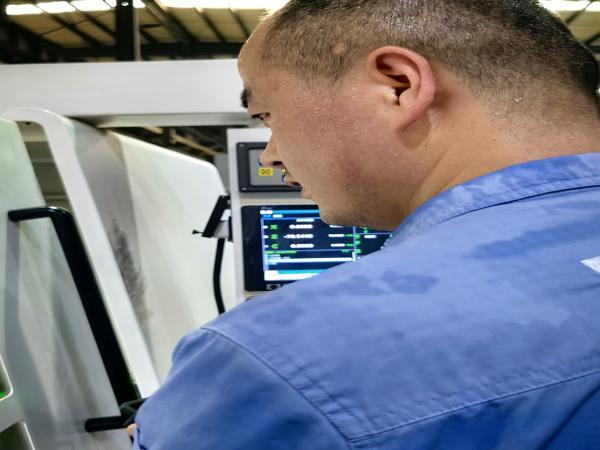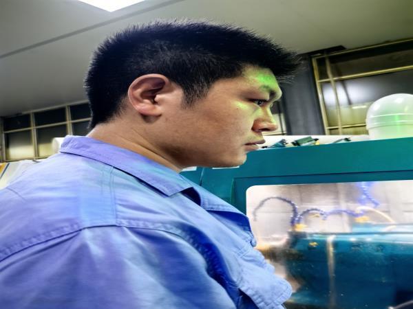 走出不過二十步,劉師傅正踮腳安裝新工件的身影撞入視線。他藍(lán)色工裝后背洇出大片汗?jié)n,汗水正順著脖頸往下淌。“劉師傅,您這是剛游完泳回來?”曹景輝笑著遞上冰糕。“趕工呢!”劉師傅抹了把臉,“前道工序多搶點(diǎn)時(shí)間,后面兄弟們就能松快些。”話音未落,他又埋頭調(diào)試起卡盤。